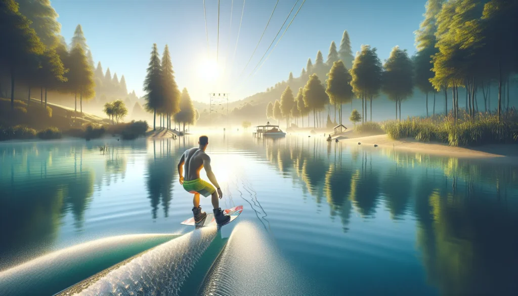 - Choisis un spot calme et encadré pour débuter en wakeboard (lac abrité, téléski tôt), en privilégiant un coaching qualifié FFSNW/IWWF.