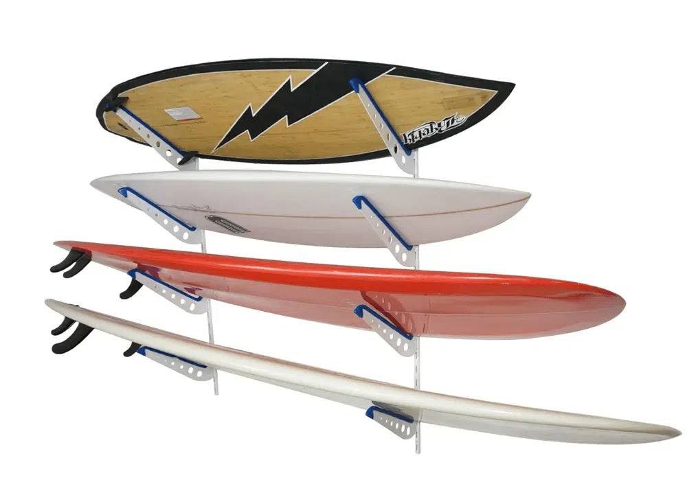 - Rack de surf : capacité accrue, adapté pour collection ou garages spacieux